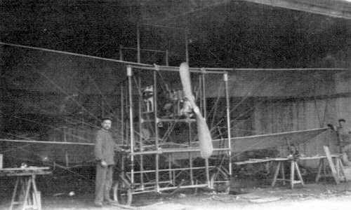 This tractor French biplane, constructed of metal pipes and an abundance of wire bracing, powered by an acetylene motor was tested at Amberieu in 1910 by a man from Lyon named Sclaves. At least one photo shows a 50 hp Prini-Berthaud engine. The rectangular wings were braced entirely by one pair of outboard struts on each side and wires from double kingposts on top. The heavy forward box structure seemed made of pipes; the rear fuselage was uncovered. The two wheels were castering.