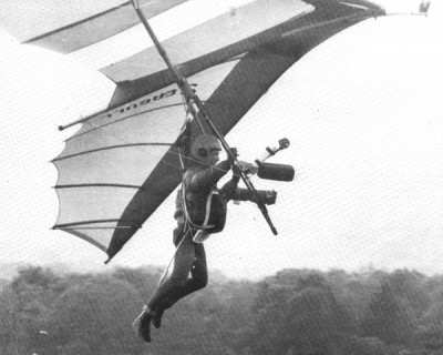 A 1979 hang glider, the Seagull Aircraft 10 meter was light, responsive, had a good clean sail for its day, and was reasonably competitive. You could really stand that glider up on its wing tip and feel every nuance of the thermal. A great, strong, stable, yet fast-rolling for low G aerobatics from Mike Riggs and Bob Keeler. The deflexer system on the leading edge worked great for performance tuning. The trapezium was not foldable.