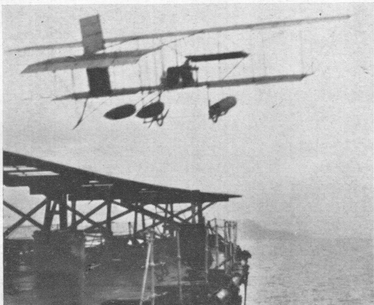 In 1912 Cdr. Samson made the first flight from a moving ship in a Shorts S.38. The S.38 was fitted with air-bags so that it could alight on the water, if necessary.