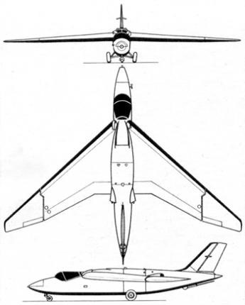 The particularity of this flying wing, designed by David Keith-Lucas, the arrow leading edge reaching 42 deg 22 min isoclinic developed from the theory of Major Hll, which had also been tested on a series of flying wings (Pterodactyl), built before the war by Westland. This demanded a flexible rather than stiff wing structure with the tips hinged to serve collectively as elevators and differentially as ailerons.