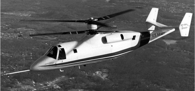 First using scale models for wind tunnel tests at the Ames NASA research center, and then the real aircraft, the resultant Model S-69, which was allotted the military designation XH-59A and the serial number 73-21942 (c/n 69-002), made its first flight on 26 July 1973. This was extensively flight tested as a pure helicopter and, with auxiliary propulsion, flown at speeds in excess of 480 km/h / 300 kt and altitudes of more than 25,000 ft. This prototype was lost in an accident a month after the first flight.