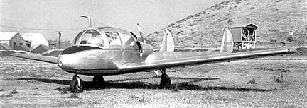 The 1947 four-place Skycraft 446 and 447 featured all-metal construction, twin booms and tails; no ailerons, but wing spoilers served that purpose.