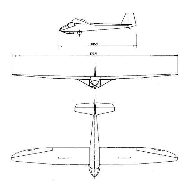 A two seat, side by side glider, a developed version of the Type 21B with larger wing span, enclosed cockpit, and revised tail unit. Braced wing, with airbrakes, no flaps.