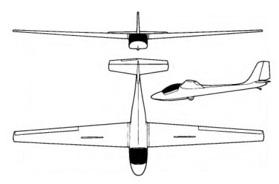 Min sinking speed: 0.66 m/sec (2.17 ft/sec) at 37.5 kt (70 km/h)