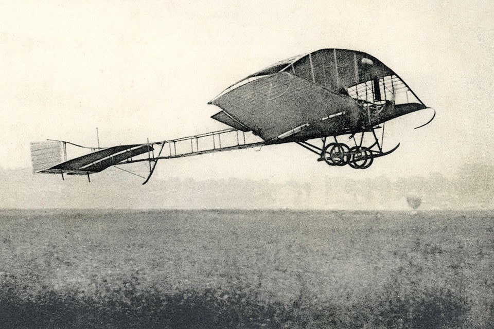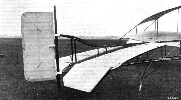It was in its wing cellule that the Bicurve differed markedly from any of its contemporaries, or from any subsequent biplane designs. The Bicurve’s lower wing attached to the upper fuselage longerons. The lower wing, which was reminiscent of that found on contemporary Antoinette monoplanes, was designed with marked dihedral, transforming to anhedral near the tips, and was fitted with conventional trailing-edge ailerons. The upper wing, on the other hand, was deeply arched, both in section and in span, so much so that the tips curved sharply downward and were attached by struts to the lower wingtips.