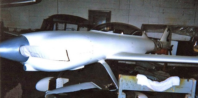 For the airframe, A.J. utilized techniques developed by the Germans in WWII. It consists of bulkheads spanned by balsa and foam. The wing is one piece, designed to be easily replaced with an updated version that contained retractable gear. The updated version was, to my knowledge, never manufactured or mounted. The wing pictured uses a NACA 64212 airfoil, 12% thick, with a constant section and a .5 taper ratio with no twist. The lack of twist produced undesirable stall characteristics, so A.J. added stall strips and rigged the ailerons up a quarter of an inch, providing an effective twist.
