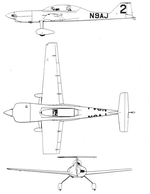 The AJ-2 was designed as a cross-country touring aircraft. It had two seats. The passenger seat was intended to serve as a baggage area when only the pilot was aboard. The engine is a Lycoming IO-360. It makes about 215 hp and has a custom, “one-off” McCauley constant-speed prop. Long-range cruise (55% power) reportedly resulted in 200 mph and 40 mpg. Normal cruise (75% power) was said to be 250-255 mph and about 23-24 mpg.