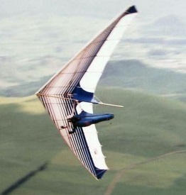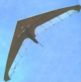 The 1980 Typhoon was the first double surface Comet clone produced by Solar Wings, in two sizes. The Typhoon followed the formula fairly closely with preformed battens and four undersuface battens. Reflex being retained by a harness of lines attached to the trailing edge from the kingpost.