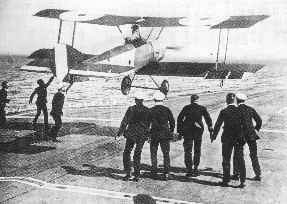 One of the best remembered exploits of the Pup was its use in determining the feasibility of landing conventionally wheeled aircraft on board aircraft carriers. In June 1917 the first takeoff was made from the gun turret platform of HMS Yarmouth. On 2 August 1917 a Pup, flown by Squadron Cdr E. H. Dunning, landed on the deck of HMS Furious, so recording the first landing of an aeroplane on a moving ship. Grab straps attached to the aircraft enabled deck crew to pull it to rest.