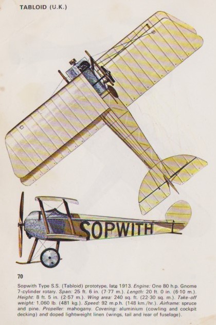 Sopwith Tabloid Gallery 13/04/202519/09/2025Terry Back to Sopwith Tabloid Tabloid fitted with deflector plate to protect the propellor Share this: Share on X (Opens in new window) X Share on Facebook (Opens in new window) Facebook Like Loading... Related