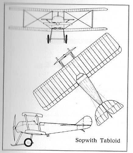 The Sopwith Aviation Company Tabloid was originally designed as sports aircraft and was first flown by Harry Hawker on 27 November 1913. It was a two-seater single-bay biplane with a side-by-side seating configuration. It was powered by a Gnôme rotary and had warping wings for lateral control.
