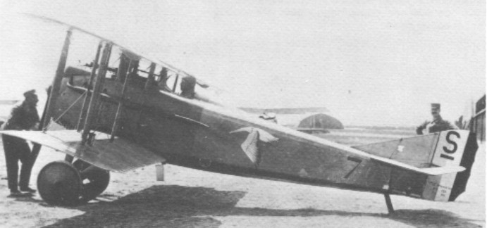 This single seat Spad Scout fighter of 1916 was one of the more successful aircraft of the First World War; 8,472 were built. It was used extensively by French, Italian and American air units and, on the Western front, two British squadrons who flew machines swopped from the R.N.A.S. for Sopwith Triplanes. SPADs equipped the French Cigognes whose insignia was a symbolic stork, and who used the machine’s ability to dive steeply without failing to bits to good effect in dog fights.
