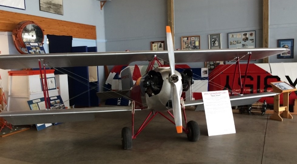 The 1931 Springfield Cadet was designed and built in Springfield, Oregon by Jim McManiman. It was owned and flown by motorcycle dealer Clarence Saville in 1935. It was acquired by the Society in 2003 and was rebuilt by Al Sherman as a static display at the Museum.