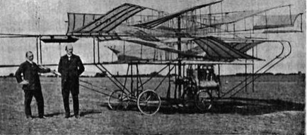 A complicated helicopter with two contrarotating fabric-covered rotors of eight and six blades, built by F. Sternemann and Dr.ing. W. Siebert of Hamburg, Germany, in 1910 and tested at the Wandsbecker Exerzierplatz.