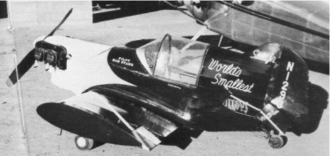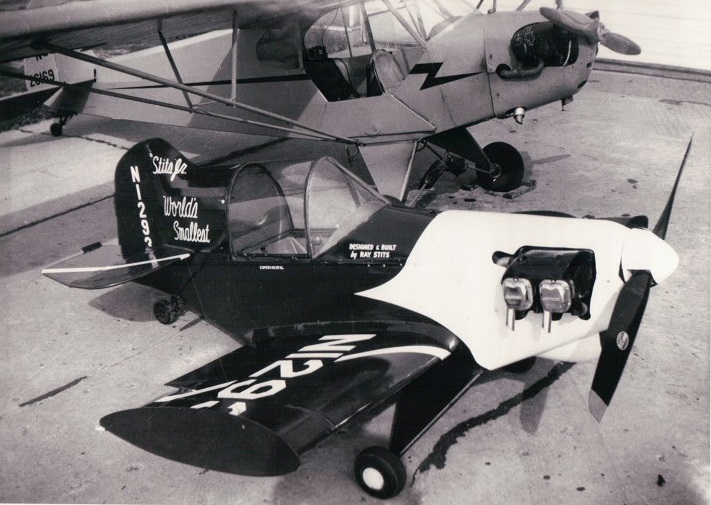 Ray Stits built his first small plane in 1948, the Junior. The incentive to build “Junior”, the monoplane, came from a discussion about the world’s smallest airplane. Someone mentioned Steve Wittman’s little racer with a 13’ span and Ray Stits queried whether or not he could fly something with a 10’10” wingspan. One of the participants in that conversation said it wouldn’t be possible and that was all it took. Ray started building. He’d actually been thinking about it for a long time and proceeded with a 40hp engine from an Aeronca. That got changed to a 65 hp Continental. The plane was a handful and after the third crash on the fifth test flight, Ray shortened the wings to 8’10” and attached tip gates to generate more lift and better aileron control. He found a new pilot, Bob Starr, a former P-51 pilot. In 1950, Junior was a big hit in airshows. He began thinking about a larger sport plane that would be easy to build and fly, but he got side-tracked with another design: his quest to create the world’s smallest biplane.