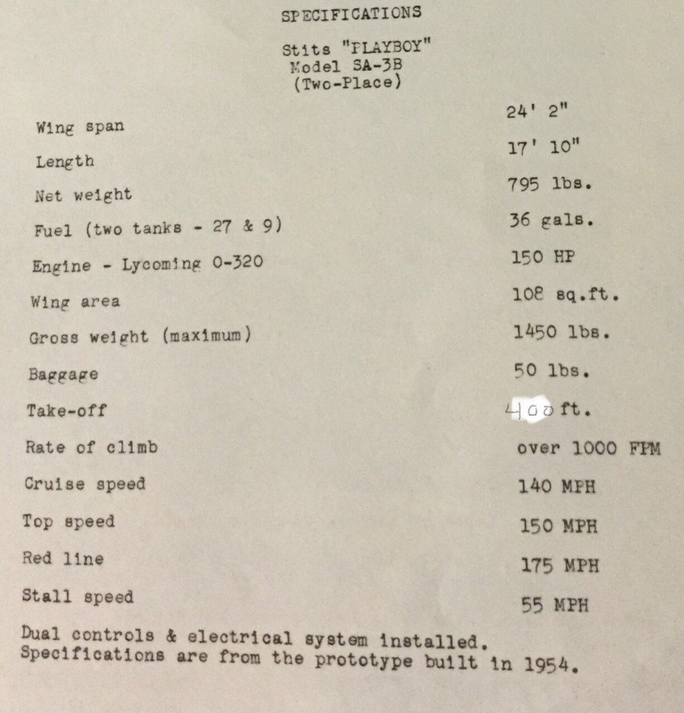 In 1952 Ray Stits designed and built the single-place Stits SA-3A Playboy. It was his third aircraft design. A subsequent variation was the two-place, side-by-side Stits SA-3B Playboy (his fifth design) in 1954.