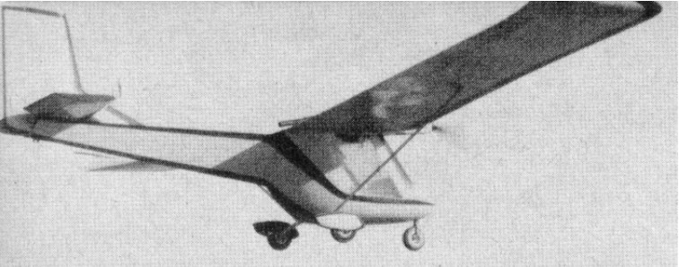 A high monowing with enclosed cabin. Three-axis controls with conventional aileron, rudder and elevator. The elevator and rudder are operated separately, and all are operated by a control stick. Construction makes use of some spruce, but is mostly composed of layered foam and fiberglass from premolded external skins. The wings. tail surfaces and fuselage are covered by some fabric. POWER-PLANT: One Cuyuna mounted in a tractor position forward of the wing on the centerline. A 2:1 reduction gear turns a two-blade wooden Ritz propeller. Fuel is carried in a fiberglass tank mounted in the wings. LANDING GEAR: Shock-mounted tricycle gear with a fiberglass leaf spring, a steerable nosewheel and no brakes. All wheels are 12-inch. Options include wheel fairings for all three wheels for $100, larger diameter wheels (16 inch, 40 cm) $105, skis $150, floats $750, removable side windows $100, instrument panel, radio, shoulder harness $22, ballistic deployment parachute $850.