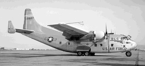 The 1958 YC-134A had a sealed and strengthened fuselage and “Pantobase” multi-purpose landing gear fitted with land/water skis and wingtip floats. Began as Chase C-123B 52-1627 rebuild then was modified by Fairchild as YC-123B with wingtip J44 jets, and later reputedly converted by Stroukoff as YC-134A “Pantobase” with R-3350-89A engines and boundary layer control.