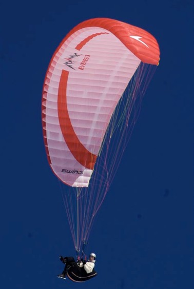 The Swing development team worked on a lightweight paraglider, which is suitable both for use as a mountain glider and also for everyday flying thanks. It was important to have a low weight and volume, and uncomplicated launch and flight characteristics. A 35gm/m² siliconised fabric was developed specifically for the Everest according to Swing specifications. Work on all aspects of the glider resulted in a weight reduction of 30% compared to gliders with similar construction.