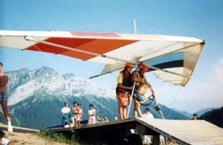 A 1982 hang glider for novice pilots. It is really not suitable for big flights. No floating, no reminder cords. Only for slope school, a few meters above ground.
