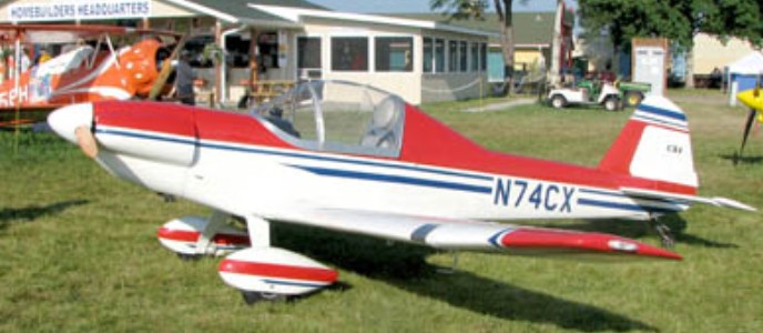 The aircraft is all metal, 6061-T6 aluminium, except the cowling. It has hydraulic disc toe brakes and a heater and ventilation system for all season flying. The aircraft can be built with an optional 3 gal aux fuel tank. The CX4’s standard specified powerplant is a Volkswagen air cooled engine. The design load factor is 3.8 g, with an ultimate load of 5.7 g