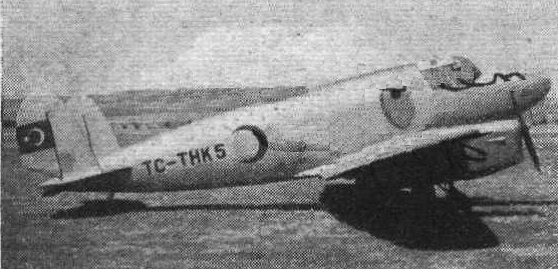 The THK-5 was a twin-engine aircraft developed in Turkey as an air ambulance. First flying in 1945, it was a conventional, low-wing cantilever monoplane of wooden construction throughout. The main units of the tailwheel undercarriage retracted into the wing-mounted engine nacelles and the THK-5 could carry two stretcher cases plus a medical attendant.