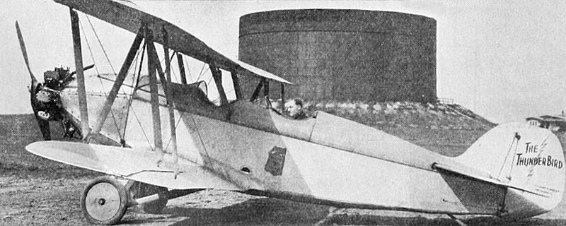 Thunderbird Aircraft was established to build and develop the Thunderbird biplane, designed by Theodore A. Woolsey, and first flown in June 1926. The production W-14 was a three-seat open-cockpit biplane powered by a Curtiss OX-5 engine.