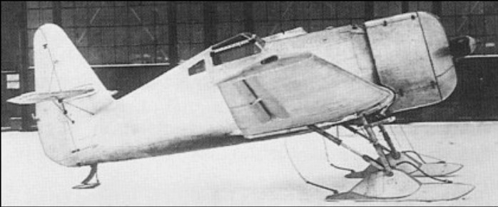 Possessing the distinction of being the world’s first all-metal single-seat cantilever monoplane fighter to be graced with a retractable main undercarriage and an enclosed cockpit, the ANT-31 was designed at the KOSOS TsAGI by Pavel O Sukhoi’s brigade. Featuring a smooth, stressed-skin fuselage with corrugated skinning for the wing, tailplane and rudder, the first prototype was powered by a 580hp nine-cylinder Bristol Mercury VIS2 radial, and had a manually-operated inwards-retracting undercarriage and an aft-hinging cockpit canopy incorporating the windscreen. This aircraft entered flight test with a fixed-ski undercarriage early in May 1933, by which time major redesign was being undertaken and work had begun on a second prototype, the ANT-31bis.