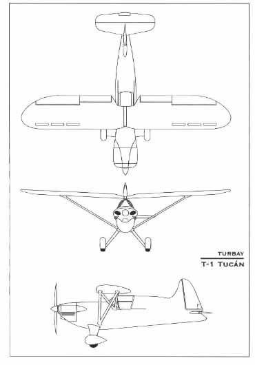 Designed by Alfredo Turbay and built by Sociedad Anonima Sfreddo & Paolini, the Tucán is a parasol-wing braced monoplane with a fixed cantilever type landing gear, tailwheel and powered by a 65 hp (48 kW) Continental A65 air-cooled piston engine. The design of the T-1 toucan started it in 1937, reaching its final form in 1939.