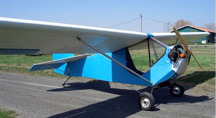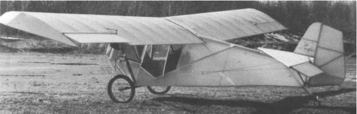 Single seat single engined high wing mono¬plane with conventional three axis control. Wing has unswept leading and trailing edges, and constant chord; cruciform tail. Pitch control by elevator on tail; yaw control by fully flying rudder; roll control by 40% span ailerons; control inputs through stick for pitch/roll and pedals for yaw. Wing braced from below by struts; wing profile double surface. Undercarriage has three wheels in tail dragger formation; axle Flex suspension on main wheels. Push right go right tailwheel steering connected to yaw control. Optional brakes on main wheels. Aluminium tube framework with glass fibre nose and fabric covering, partially enclosed (total enclosure optional). Engine mounted below wing driving tractor propeller. Covering of framework and wing is Dacron. Ribs made from foam-¬aluminium composite. Aircraft grade aluminium used for structural components. AN hardware.