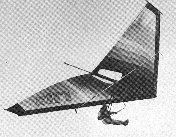 The 1974 Dragonfly Mark I was the first flex-wing, finite tip glider to be put into production. Designed for advanced and competition, it can be soared in approximately half the wind velocity needed for a standard Rogallo. It has a low sink rate, tight turning ability, broad speed range, and has no tendency to drop a wing even when banked at more than 40 degrees.