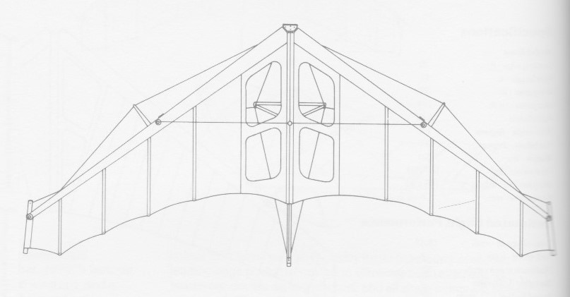 The sail is Howe and Bainbridge 3.8oz stabilised dacron and there was a choice of colours. Leading edge pockets are fitted for minimum airfoil distortion. Special soaring windows for upward visibility was optional.