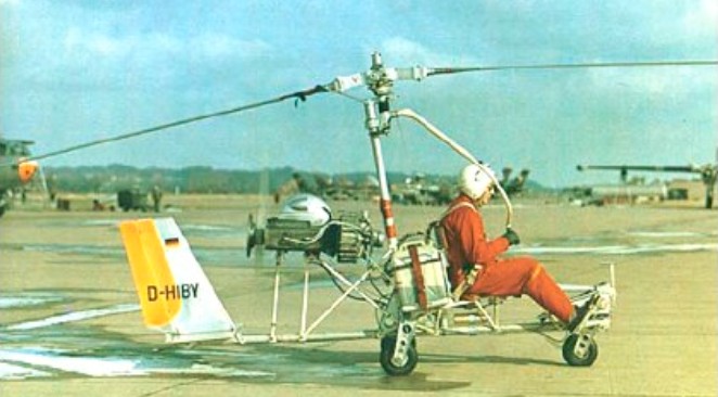 In 1968, VFW (Vereingte Flugtechnische Werke) built an experimental open gyrocopter modelled on the Bensen B.8M. This VFW-H2 was unusual in having ducted rotor blade tip jets supplied from the 72hp McCulloch engine. The engine itself was mounted behind the pilot and drove a two-blade pusher propeller.
