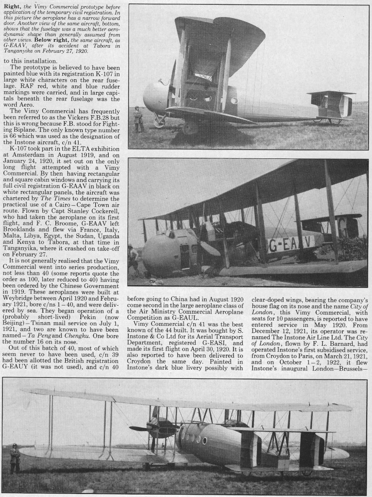 Vickers Vimy Commercial Article 29/04/2025Terry Back to Vickers Vimy Share this: Click to share on X (Opens in new window) X Click to share on Facebook (Opens in new window) Facebook Like Loading... Related