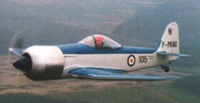 The scale Hawker Sea Fury is built around a plywood box core and covered with styrofoam and fiberglass. Plans have been produced for this and two other ½-scale World War II replicas by War Aircraft Replicas. All use the same common wooden fuselage box and wing spar construction in order to duplicate the various fighter aircraft. Polyurethane foam is shaped and covered with high-strength fiberglass cloth and laminating epoxy resin to form a rigid, yet light structure. Landing gears are of air/oil oleo type, with either electrical or manual retract and have a built-in emergency release. Engines vary from 65 hp to 125 hp, which accounts for variations in perform¬ance. Authentic three and four bladed props are available.