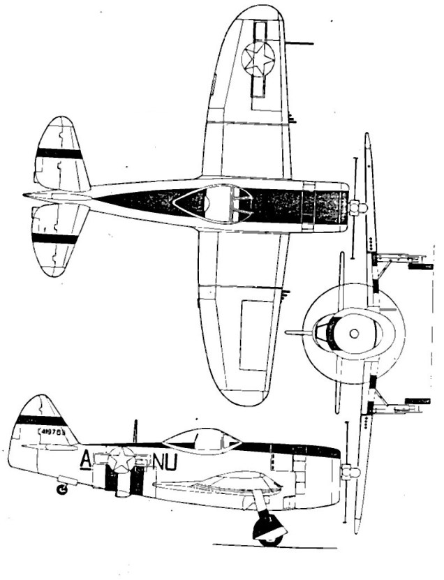 The scale P-47 is built around a plywood box core and covered with styrofoam and fiberglass. Plans have been produced for this and two other ½-scale World War II replicas by War Aircraft Replicas. All use the same common wooden fuselage box and wing spar construction in order to duplicate the various fighter aircraft. Polyurethane foam is shaped and covered with high-strength fiberglass cloth and laminating epoxy resin to form a rigid, yet light structure. Landing gears are of air/oil oleo type, with either electrical or manual retract and have a built-in emergency release. Engines vary from 65 hp to 125 hp, which accounts for variations in perform¬ance. Authentic three and four bladed props are available.