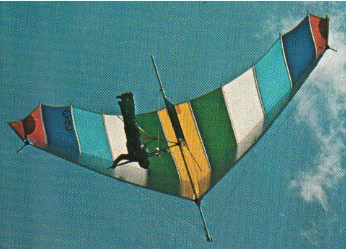 The 1976 Falcon 3 is the first British hang glider to feature cylindricised inflatable leading edges, a pre-cambered keel and slightly elliptical tips. These features were developed from experience with the Nova and Sting Rogallos. Despite its second generation format it is claimed that the Falcon 3 can be parachuted with little tendency to drop a wing. Penetration is reported to be good and the glider has been regularly soared in winds of 35 + mph. They were priced at £ 335.00 ex VAT in 1976.