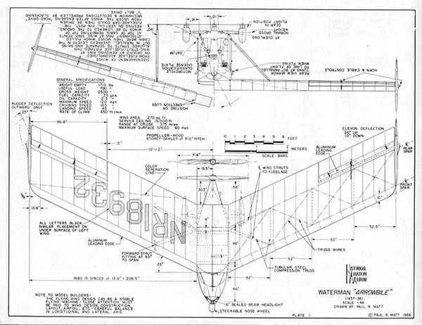 Waterman found that each aircraft planned to sell for $3,000 was cost¬ing him $7,000 to build, and Studebaker pulled out of the deal. Before another backer could be found the Japanese attack¬ed Pearl Harbor, and it was not until 1948 that Waterman began work on his seventh, and final Arrowbile N54P. He replaced the Stude¬baker engine with a Tucker auto engine (Franklin converted to liquid-cooled), renamed it Aerobile, and donated the craft to the Smithsonian Institution in Washington, D.C., where it remains.