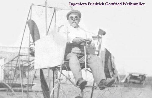 The first of two monoplanes built at San Jerónimo Sud, Argentina, by Santa Fe aeronautical pioneer/constructor Ingeniero Friedrich Gottfried Weihmüller, aka Federico Godofredo Weihmuller (frequently spelled Weighmüller).
