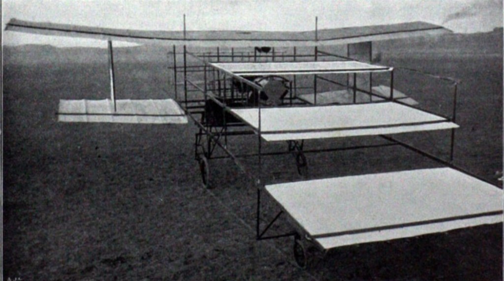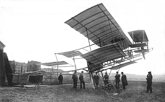 One of the first revisions of the 1909 Witzig-Liore-Dutilleul No 1, with the wheels set too far forward, resulting in the distortion of the whole airframe.