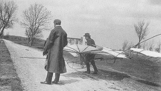 A glider of Lilienthal type but with a landing ski, built by Ingenieur Alois Wolfmüller from München, Germany, and datable to April 1908. It was a modification of a 1907 biplane glider, modified to monoplane configuration.