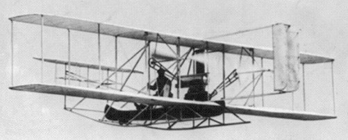 The 1905 Flyer III was offered to the US War Dept for evaluation, who turned it down when they couldn’t envision any practical use for a machine that flew. Modified in 1907 for demonstration flights, one earned national headlines. On 29 September 1909 Wilbur made a five-minute flight around the Statue of Liberty. To the amazement of the crowd, there was a red canoe attached to the bottom of the plane’s skis during that flight—if the plane went down into water, Wilbur reasoned, he could use the canoe to float to safety. This feat was repeated on 5/26/2003 by a Dayton group who had built a flying replica of Flyer 3.