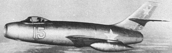 Developed in parallel with the Yak-23, the similarly-powered Yak-25 was conceptually more advanced and derived from the Yak-19. By comparison with the earlier fighter, the Yak-25 employed the higher-speed TsAGI S-9S-9 laminar section at the wing root translating to a KV-4-9 section at the tip with a constant thickness of 9% throughout. Despite the greater diameter of the 1625kg RD-500 (Rolls-Royce Derwent) – similar to that installed in the Yak-23 prototypes – than the RD-10F of the Yak-19, the diameter of the fuselage of the Yak-25 was unchanged. Sweptback horizontal tail surfaces were adopted, provision was made for two 200-litre drop tanks under the wing tips and armament comprised three 23mm NR-23 cannon. The first of two prototypes was flown on 31 October 1947, but, although the subsequent flight test programme was allegedly successful, no production contract was issued for the Yak-25. One of the prototypes was utilised during 1948 for (fixed) tandem-wheel undercarriage trials as part of the Yak-50 development programme.