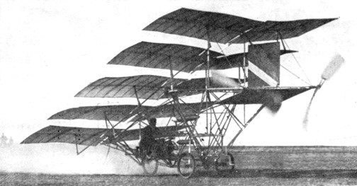 James Slough Zerbe, known as Professor Jerome S. Zerbe built three multiplanes circa 1910. The Quintaplane of 1910 had five wings attached to what appears to be a flying motorcycle.