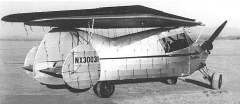 The 1947 Plane-Mobile built by Daniel R Zuck and Stanley D Whitaker was a roadable airplane with a floating, or pivotal, wing, free to change its angle of attack according to the vagaries of the air currents. There were no rudders or elevators in the tail, instead the wings had “ailerators,” a combination of ailerons and elevators.