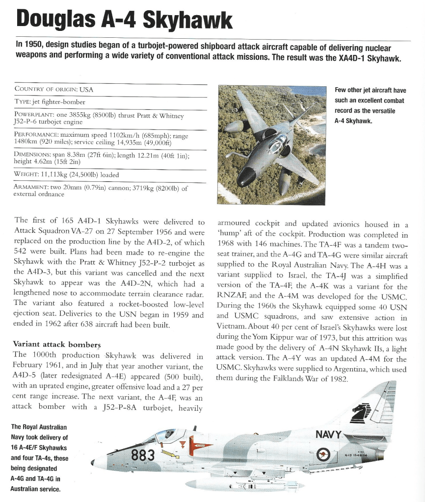 Douglas A-4 Skyhawk Article 18/05/202508/09/2025Terry Back to Douglas A-4 Skyhawk 1957 December 1997 Share this: Share on X (Opens in new window) X Share on Facebook (Opens in new window) Facebook Like Loading... Related