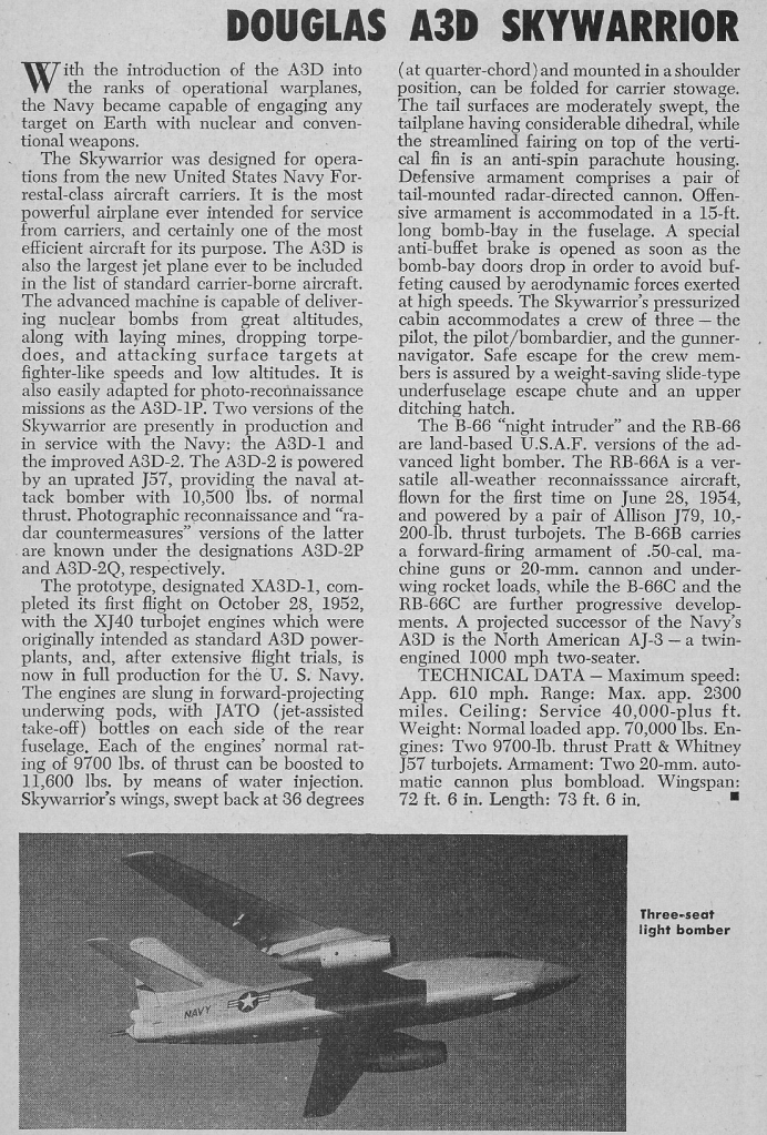 Douglas A3D / B-66 Destroyer Article 18/05/202502/09/2025Terry Back to Douglas A3D / B-66 Destroyer 1957 Share this: Share on X (Opens in new window) X Share on Facebook (Opens in new window) Facebook Like Loading... Related