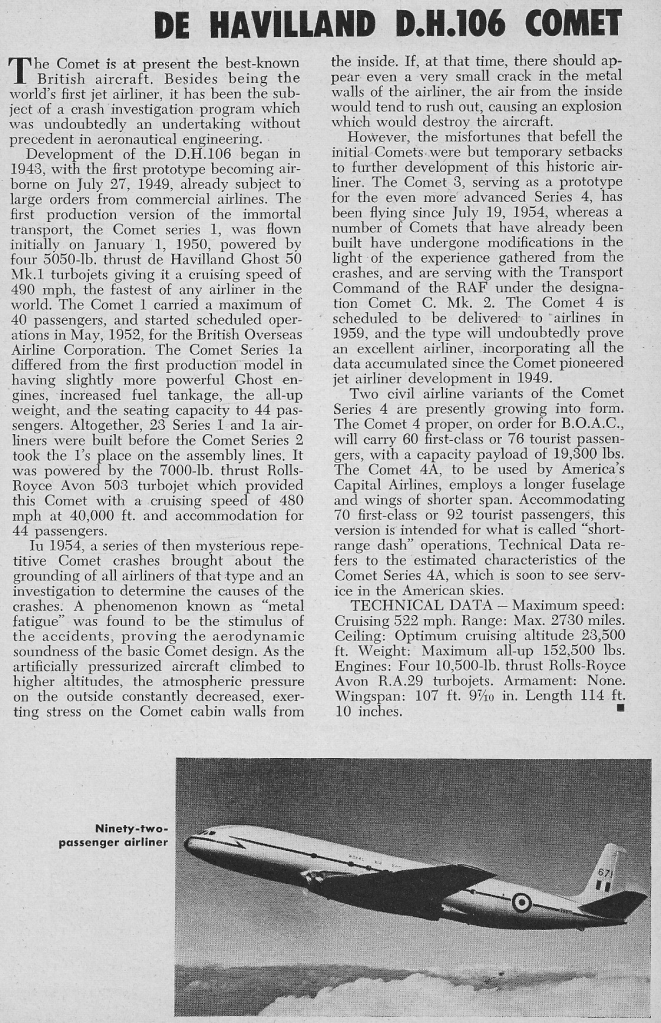 DH 106 Comet Article 19/05/202502/09/2025Terry Back to de Havilland DH 106 Comet / Nimrod 1957 Share this: Share on X (Opens in new window) X Share on Facebook (Opens in new window) Facebook Like Loading... Related