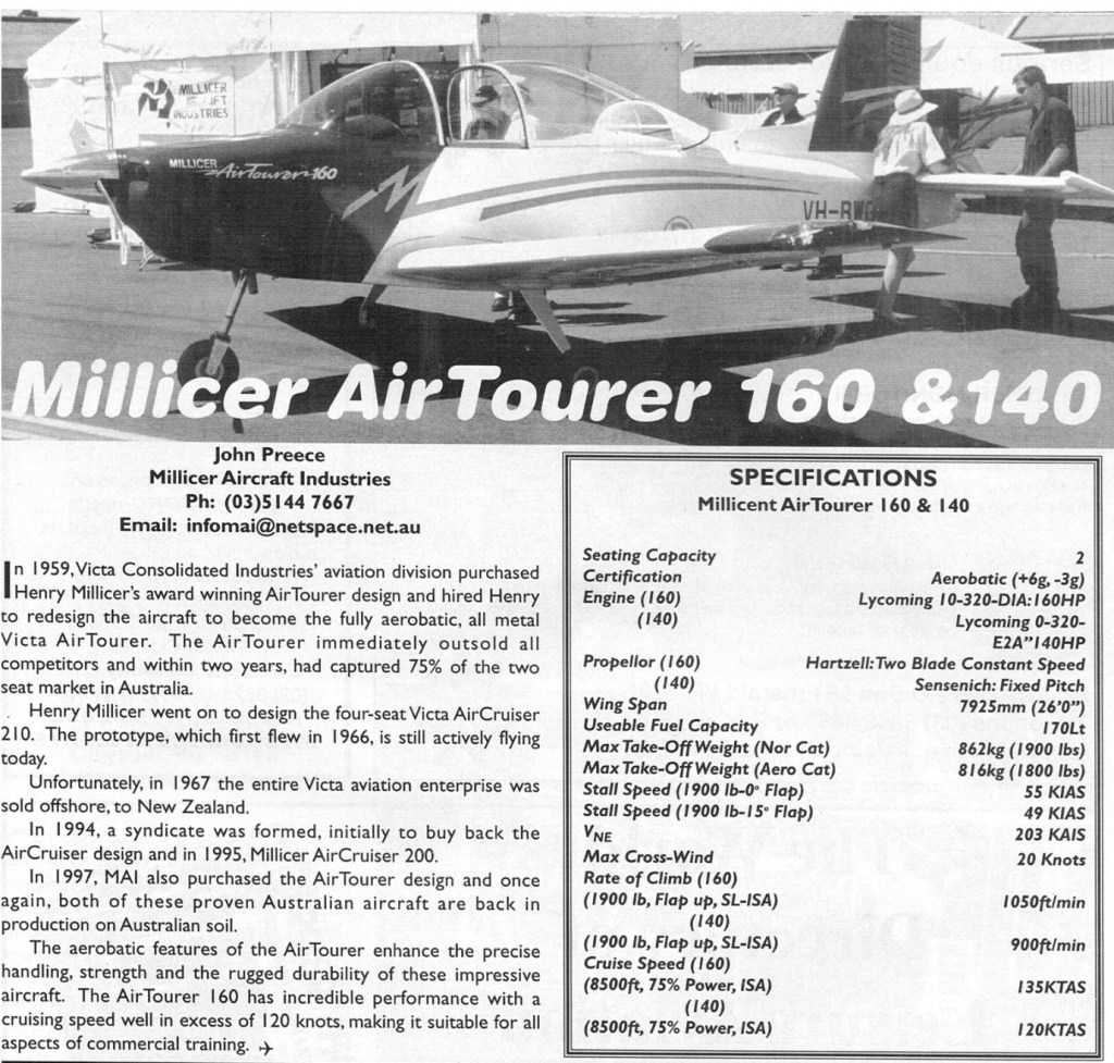 Millicer M10-160 Airtourer Article 31/05/2025Terry Back to Millicer M10-160 Airtourer March 1999 Share this: Click to share on X (Opens in new window) X Click to share on Facebook (Opens in new window) Facebook Like Loading... Related