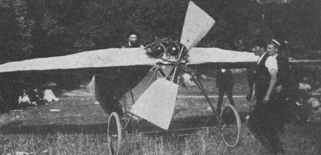 Bellamy’s later tailless monoplane, tested at Petersham Meadows in August 1908 did not fly, but taxied quite quickly along the ground.